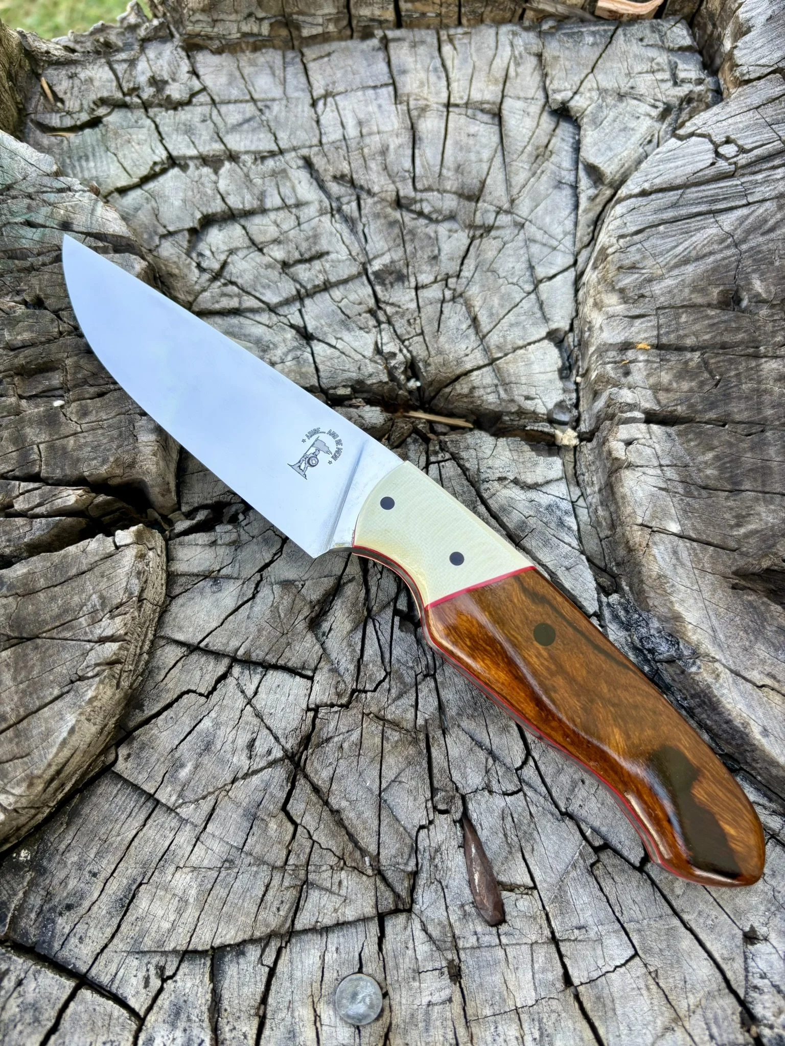 A custom EDC in 80Crv2, G10 and Desert Ironwood.
